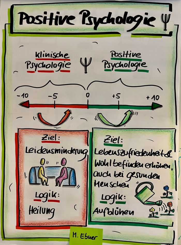 Positive Psychologie ist die „Wissenschaft vom gelingenden Leben“ und ein noch relativ junges Forschungsfeld der Psychologie. Sie forscht nach Aspekten, die das Leben besser, glücklicher, gesünder, lebenswerter machen. Dabei geht es darum wie Ressourcen aufgebaut, Wohlbefinden erhöht, Resilienz gesteigert, persönliche Stärken genutzt und Sinn erlebt werden können. Das führt zu Wachstum, persönlicher Entwicklung und Aufblühen von Menschen. Denn schließlich ist Gesundheit weit mehr als die Abwesenheit von Krankheit.