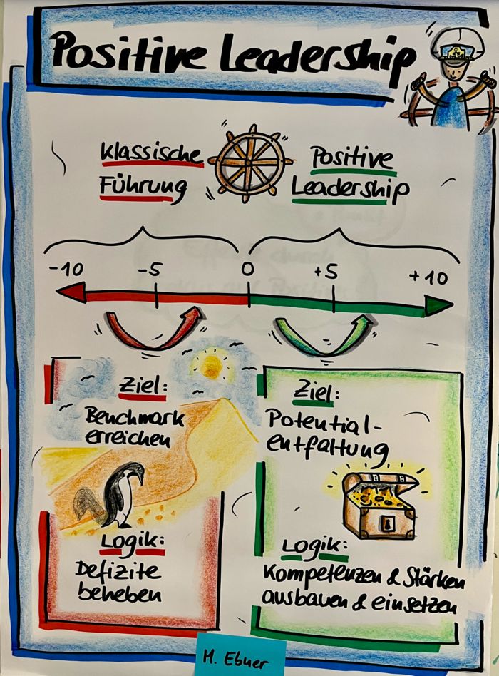 "Positive Leadership" ist somit die Führungskompetenz, ein Arbeitsumfeld zu schaffen, in dem Mitarbeitende die Möglichkeit bekommen und Lust haben, ihre Stärken zu erkennen, auszuleben und weiterzuentwickeln. sich in dem, was sie tun, wertgeschätzt fühlen, sich damit identifizieren und dadurch motiviert sind, sich nicht nur an der geforderten Leistung zu orientieren, sondern sich auch einzubringen und sogar Mehreinsatz zu leisten.
